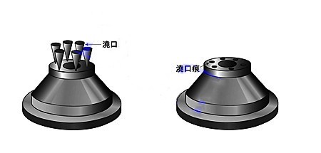 轉注成型和(hé)射出成(chéng)型模具,都是通過多個(gè)稱為澆口的孔洞,將材料(liào)注入閉合的模(mó)具(jù)中。澆口(kǒu)的直徑範圍為.254 – 3.81mm(.010- .150 in),在模穴的圓周上呈間距排列;而在成品上表麵看到的突起點或凹點(diǎn),稱為(wéi)澆口痕(hén)。為求最佳產品的功能性及美觀性(xìng),我們皆與您一同討論,為產品設(shè)計(jì)最(zuì)適合的澆口直徑和位置。