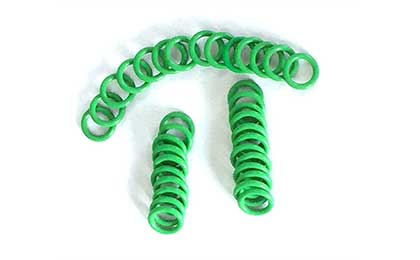 HNBR氫化(huà)丁腈橡膠密封圈: 具有極(jí)佳的抗腐蝕、抗撕裂和抗壓縮變形特性,耐(nài)臭氧、耐(nài)陽(yáng)光、耐天候性(xìng)較好。比丁腈橡膠有更佳(jiā)的抗磨性。適用於洗滌機械、汽車發動機係統及使用(yòng)新型環保冷媒 R134a的製冷(lěng)係(xì)統中。不(bú)建議使用於醇類、酯類或是芳香族的溶液中。一般使用溫度範圍為 -40~150 ℃。